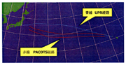 画像上の青線がUPR経路。下の赤線はPACOTS経路(JAL) 日本航空は8日、8月11日から日本―ハワイ間において新経路設定方式「UPR(USER PREFERRED ROUTE)」を試行運用することを発表した。この方式により飛行経路・飛行時間が短縮できるとして同路線での二酸化炭素(CO2)削減量は4700トン、燃料使用削減量約193万リットル、燃油費削減効果1億8000万円になると見込んでいる。