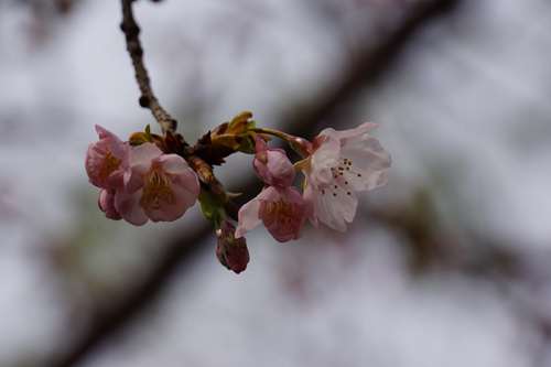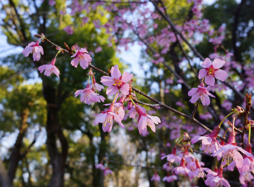 上野恩賜公園入口の袴腰広場の「大寒桜(オオカンザクラ)」が咲き始めました